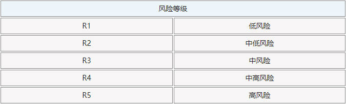 2. Risk level classification of products or services  &nbsp ;   The corresponding relationship between the assessment score and the risk level of the fund product, in order from low to high risk, divides the product or service into at least five levels: R1, R2, R3, R4, and R5.